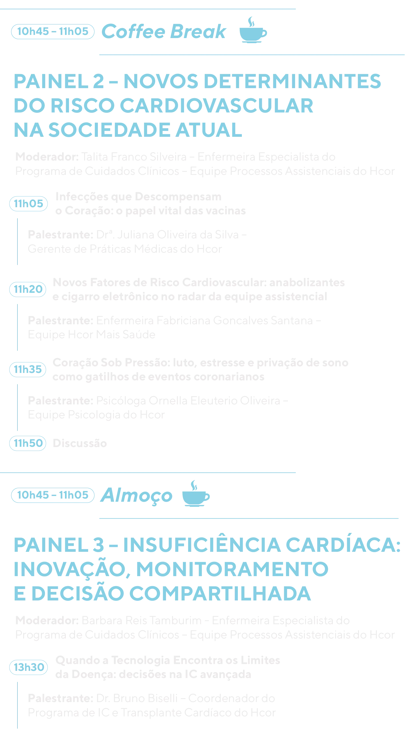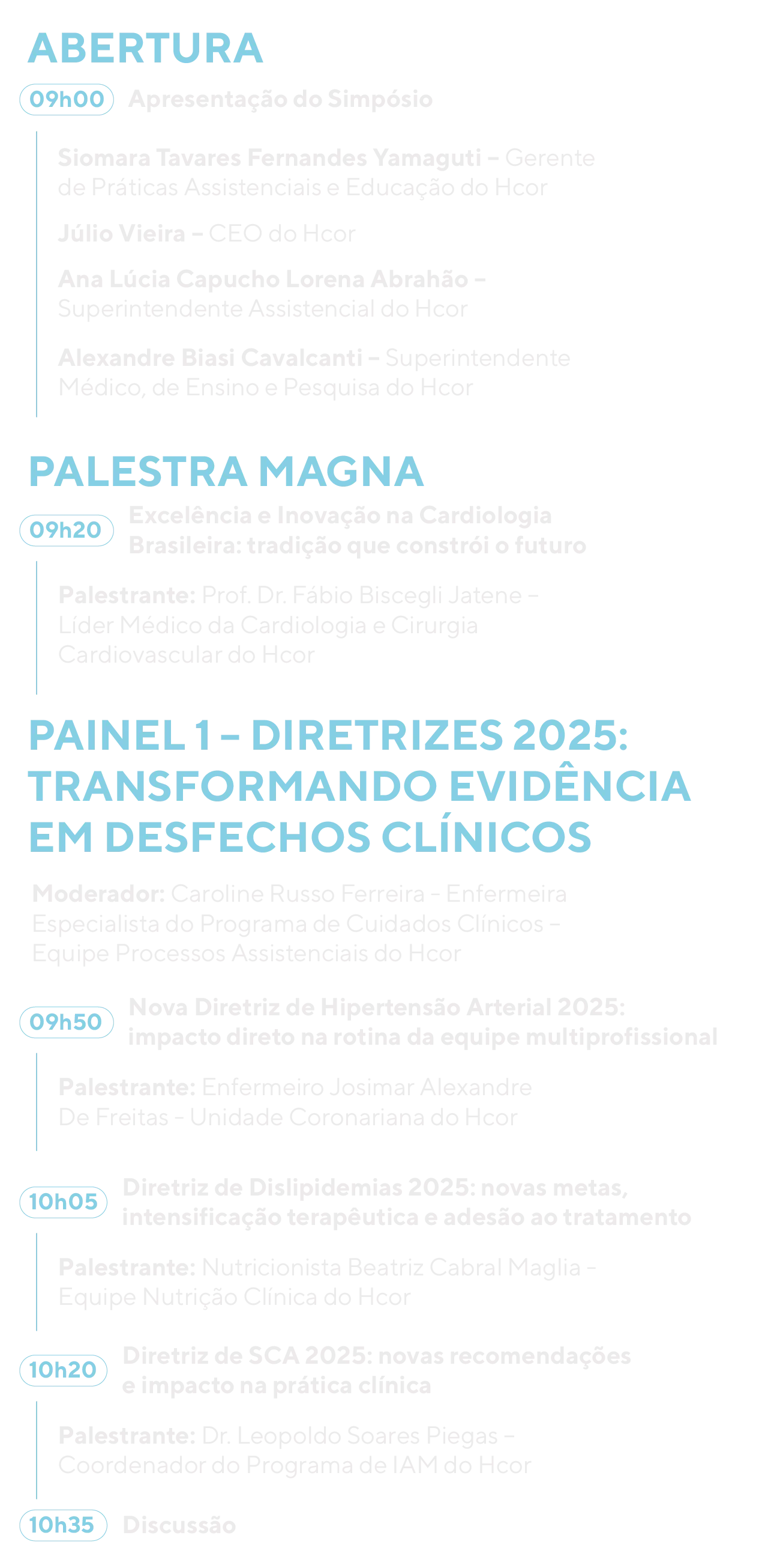 Este Simpósio celebra os 50 anos do Hcor reafirmando o compromisso institucional com a evolução permanente do cuidado cardiovascular. Em um cenário marcado por rápidas transformações científicas e mudanças no perfil epidemiológico da população, torna-se essencial promover um espaço qualificado de reflexão, atualização e integração multiprofissional.